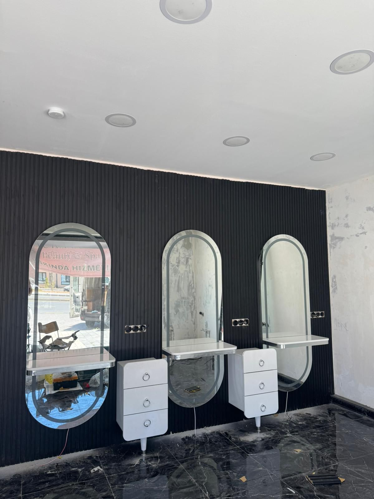Kuaför salonları ve güzellik merkezleri için tasarlanmış 3’lü Kesim Aynası ve 2’li Komodin Takımı, saç kesim ve styling işlemlerini daha verimli ve düzenli hale getirir. Fonksiyonel komidinleri ve geniş aynaları ile hem müşteri hem de kuaför için maksimum konfor sağlar.